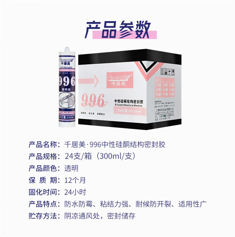 【996玻璃膠透明色1箱-24支】